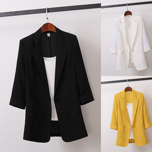 2024 jachetă de costum de lungime medie din bumbac și in, largi, lejer și la modă