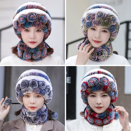 [Pălărie + eșarfă] Set de pălărie și eșarfă din blană de iepure de vidră de înaltă calitate