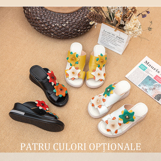 【35-41】 sandale cu înălțime mijlocie, respirabile, talpă moale, piele moale, la modă flexibilă