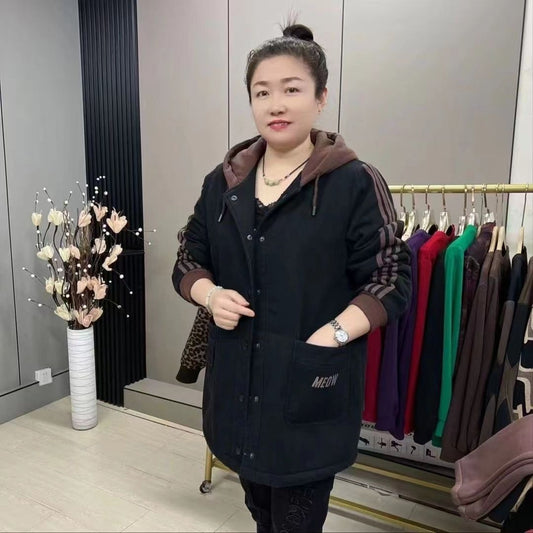 Jachetă largi din catifea de toamnă și iarnă cu glugă