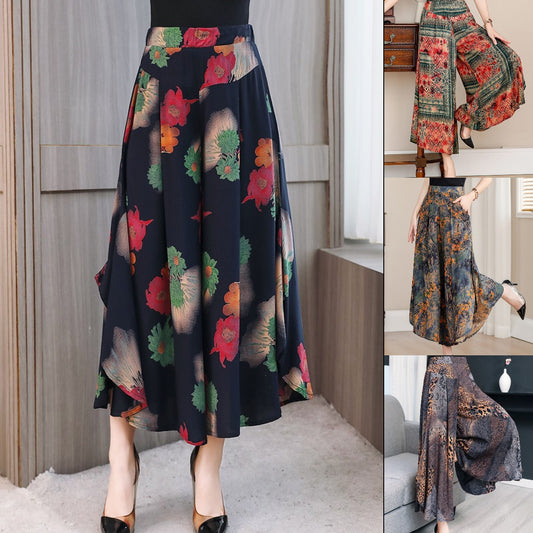 🔥🔥【XL-5XL】Pantaloni largi, subțiri, cu talie înaltă, imprimați în nouă puncte