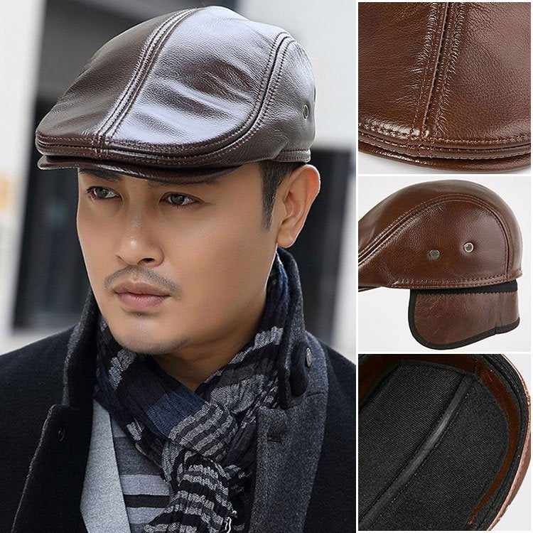 Șepci din piele pentru exterior pentru bărbați, berete de iarnă pentru bărbați, apărători calde pentru urechi 100% piele de vacă