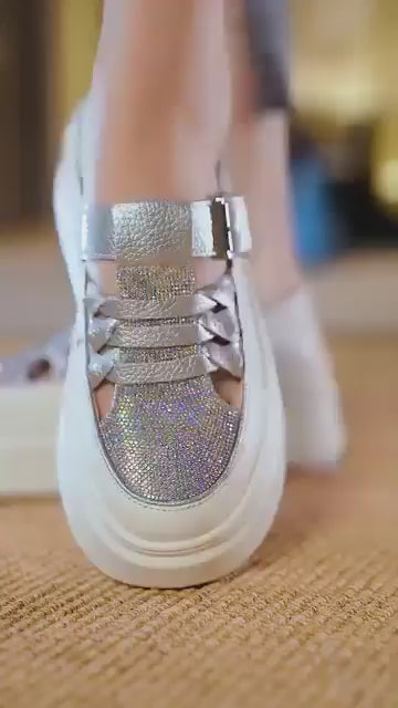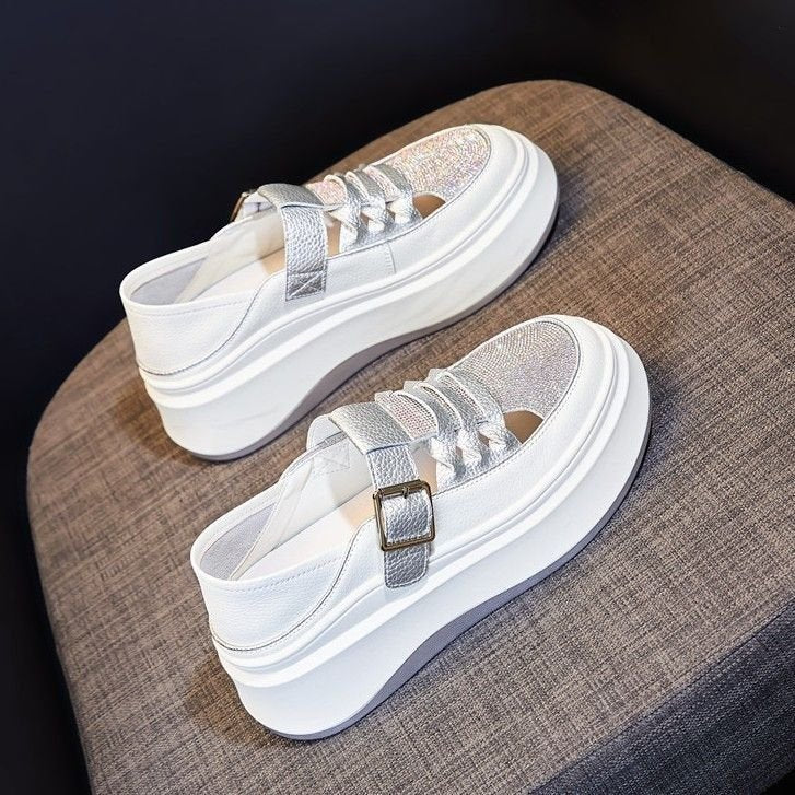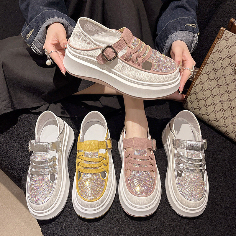 ✨✨🔥【35-40】2024, vară, sandale casual cu talpă groasă, cu toc pană, cu strasuri, cu două purtări