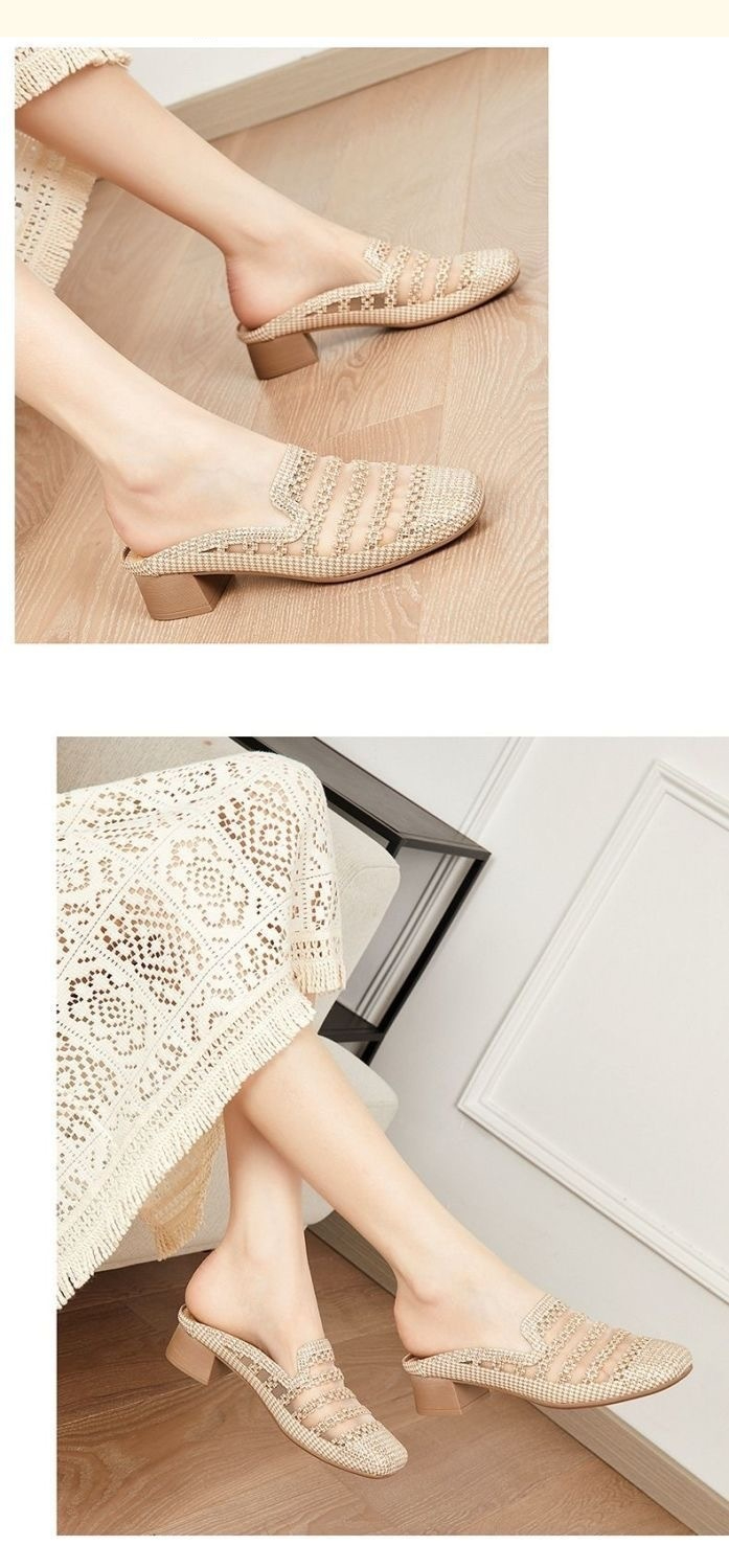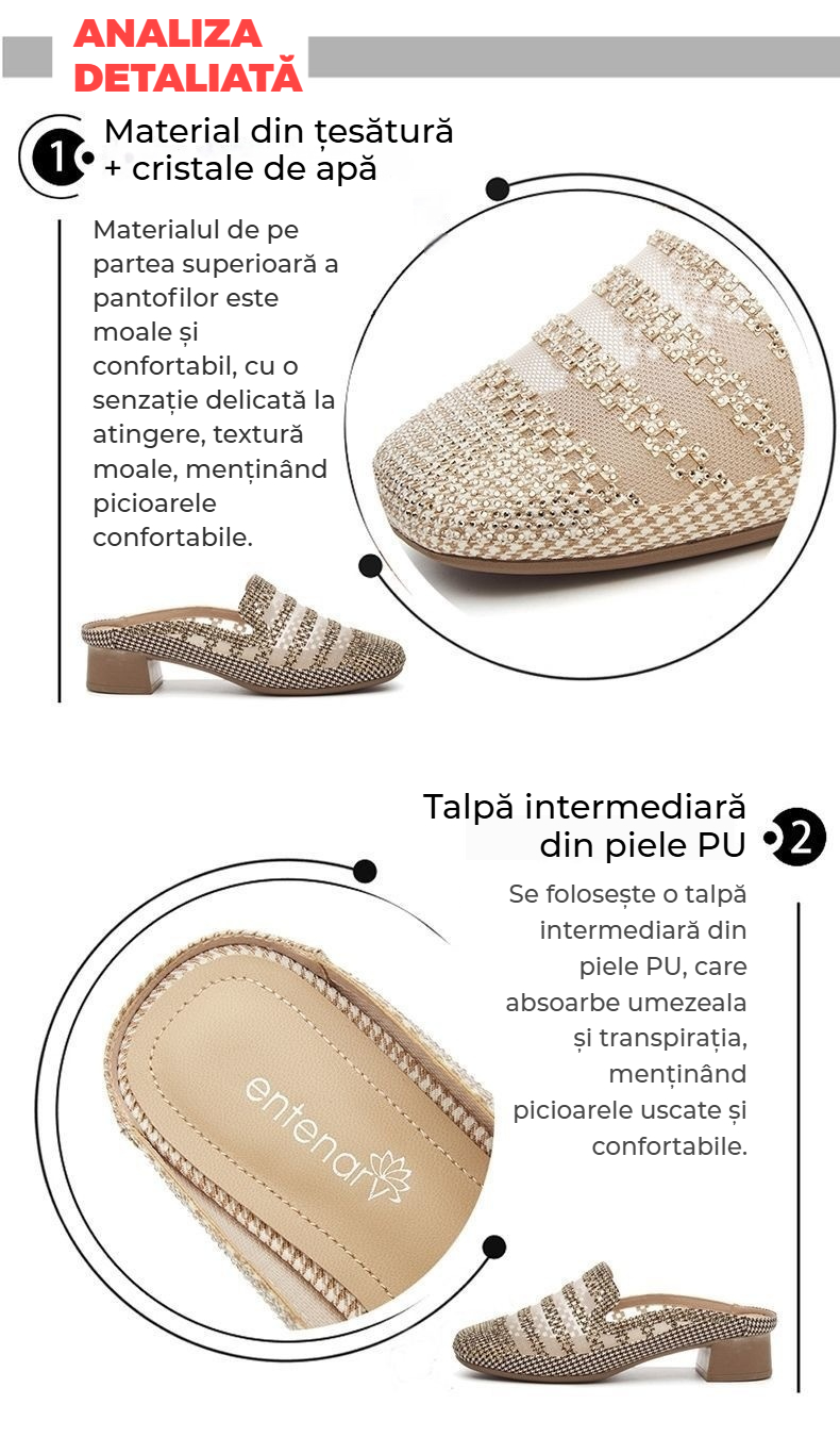 👍【35-40】Papoci casual cu strasuri din plasă, la modă de vară, confortabili și antiderapanți, foarte potriviți pentru picioare late.