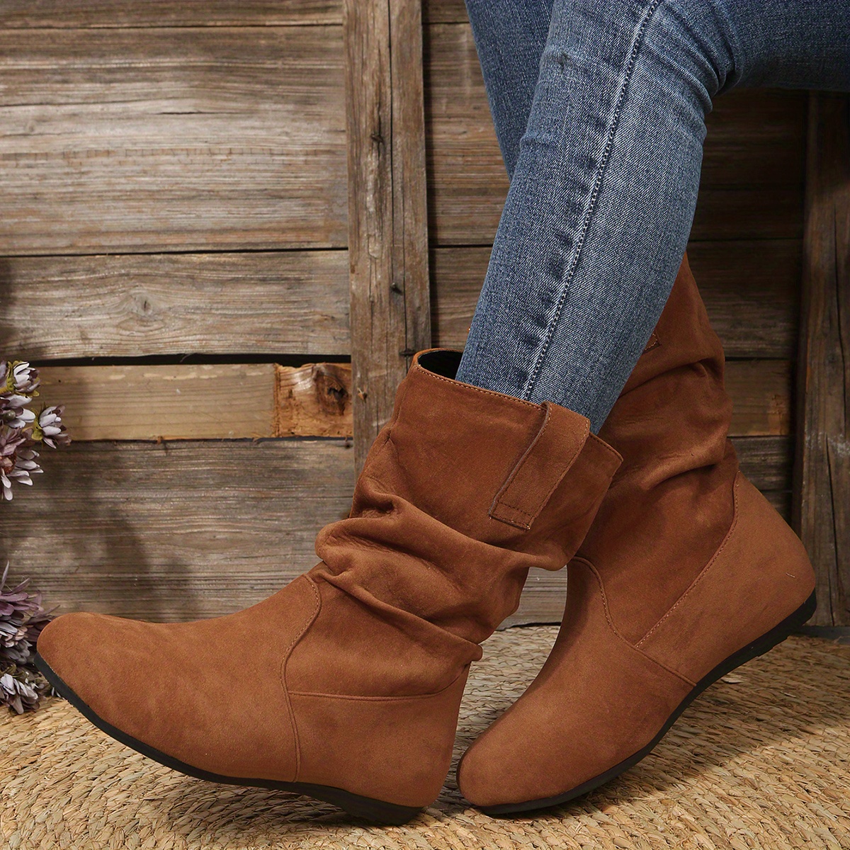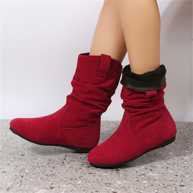 👢【36-42】2024 toamnă și iarnă noi cizme plate cu vârf rotund de catifea de lungime mijlocie 3826341