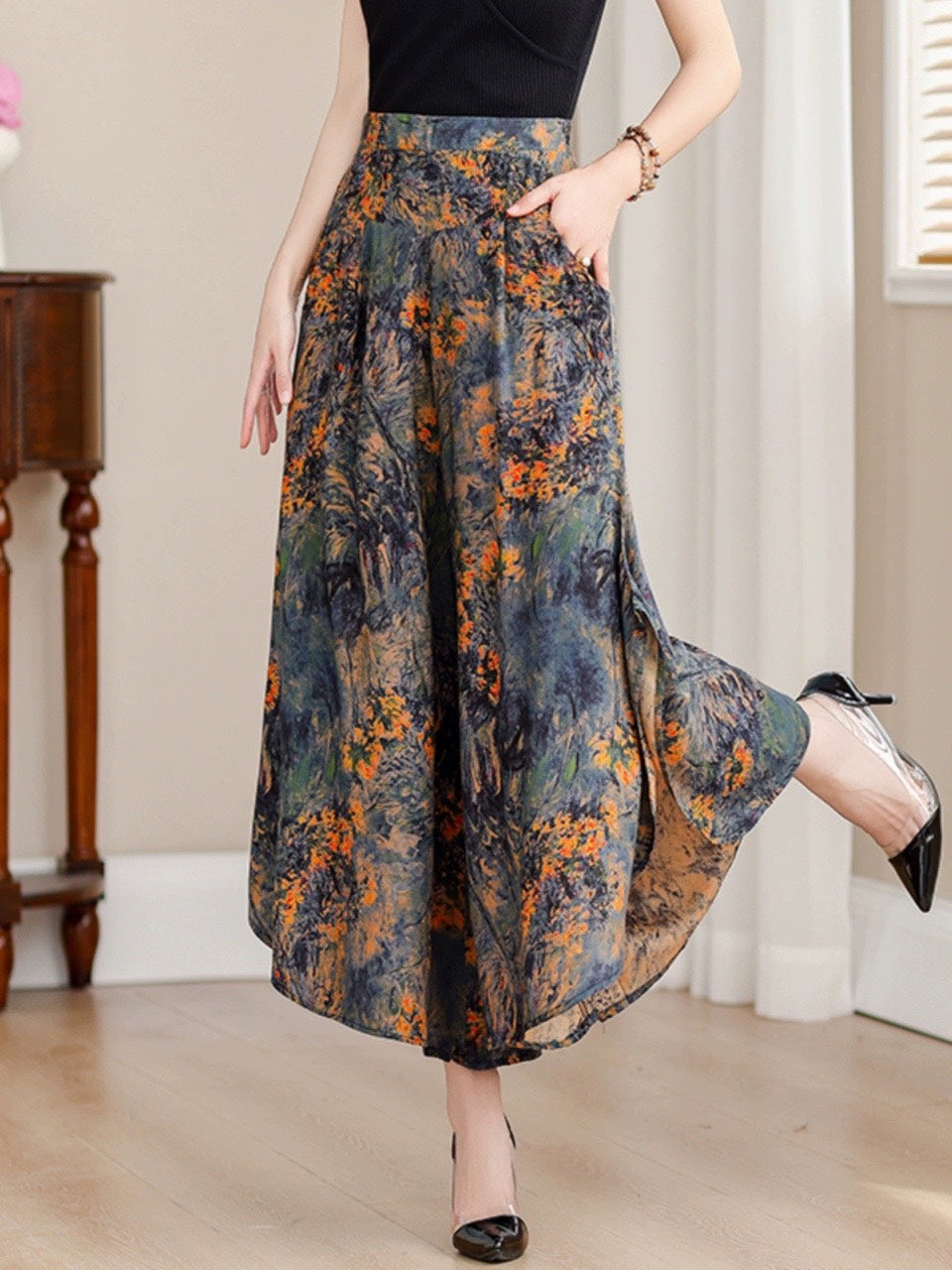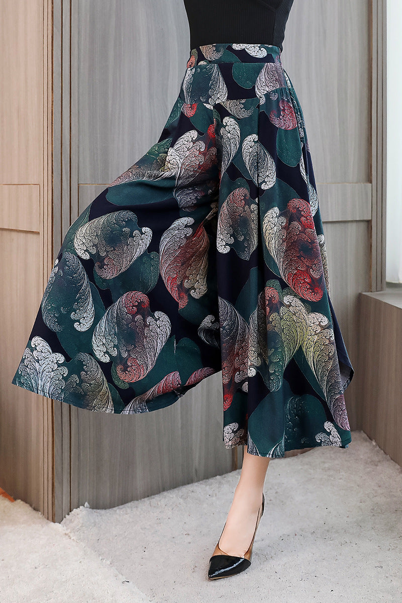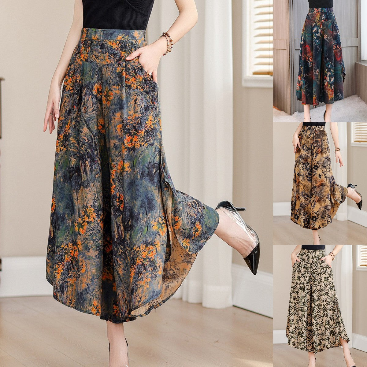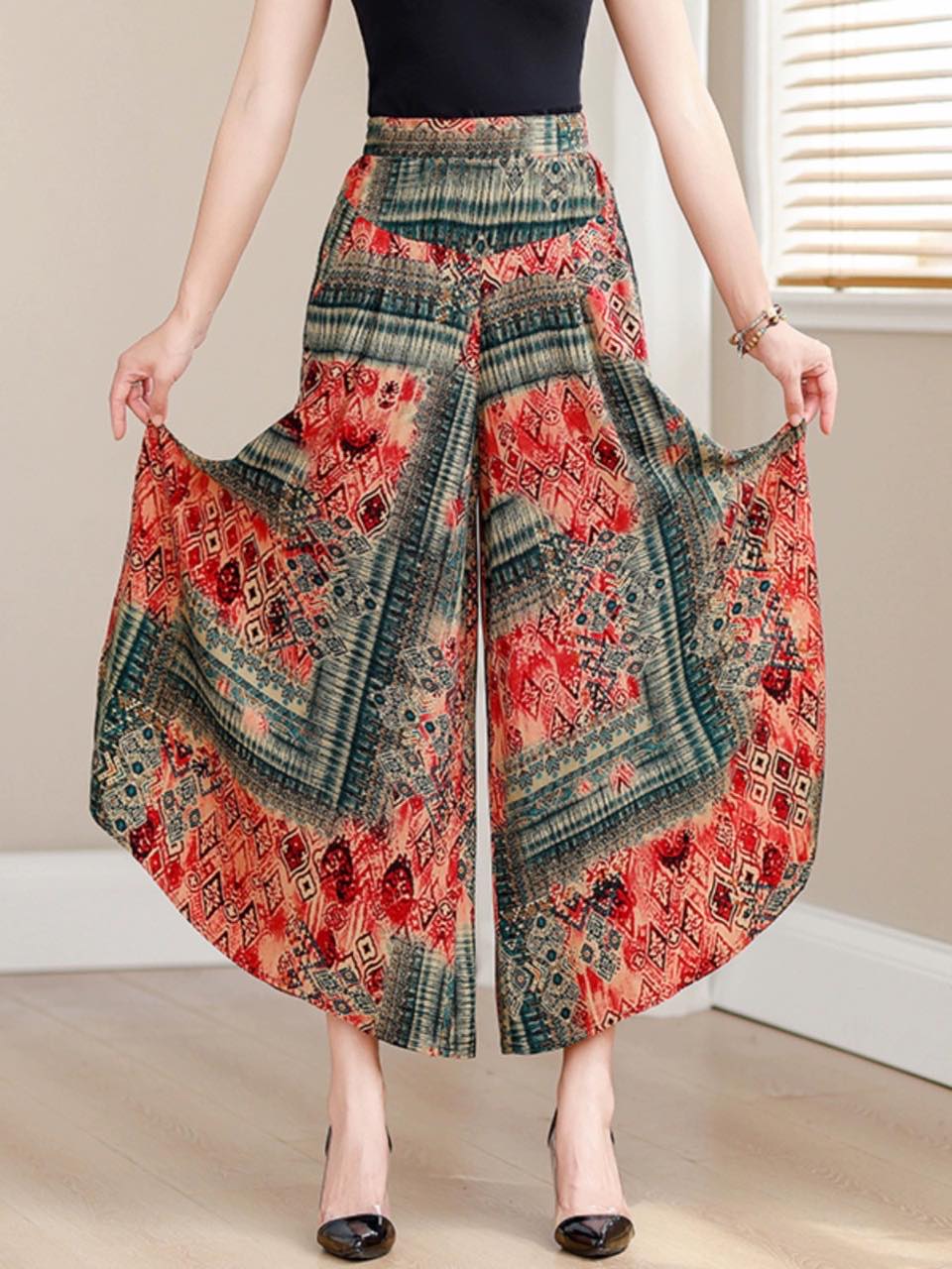 🔥🔥【XL-5XL】Pantaloni largi, subțiri, cu talie înaltă, imprimați în nouă puncte