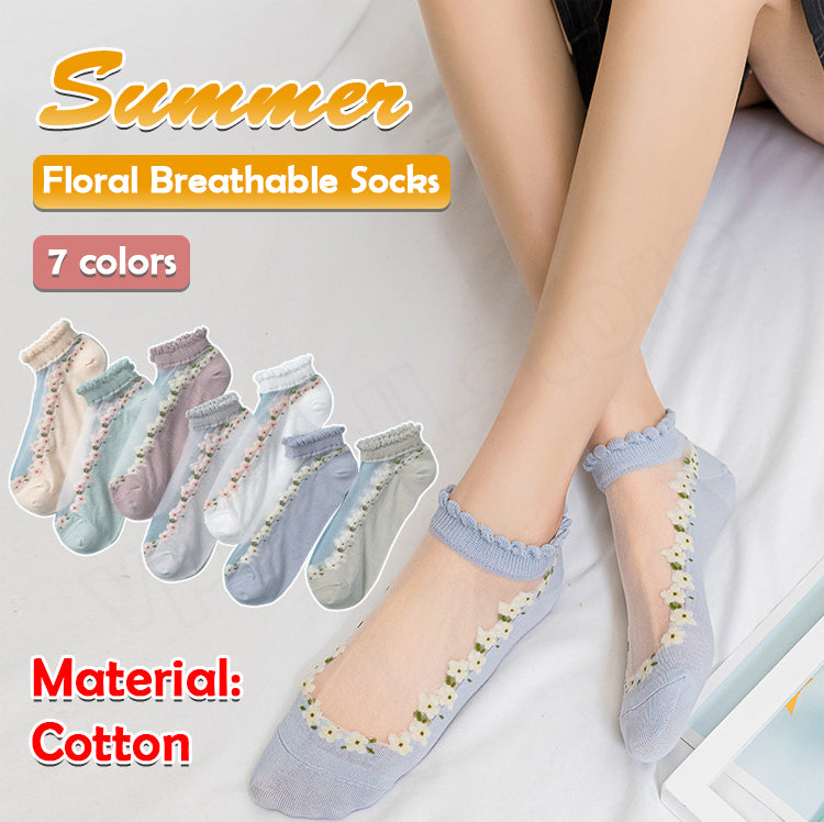 🔥Reducere de ultima zi -【7/14/21 perechi】 șosete de vară cu flori de vară respirabile Material: bumbac