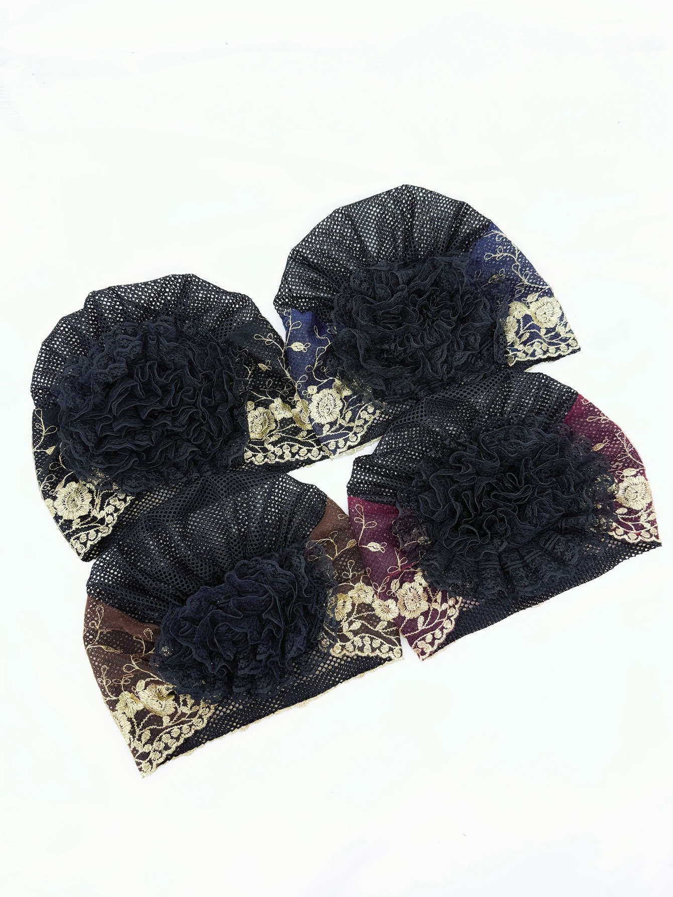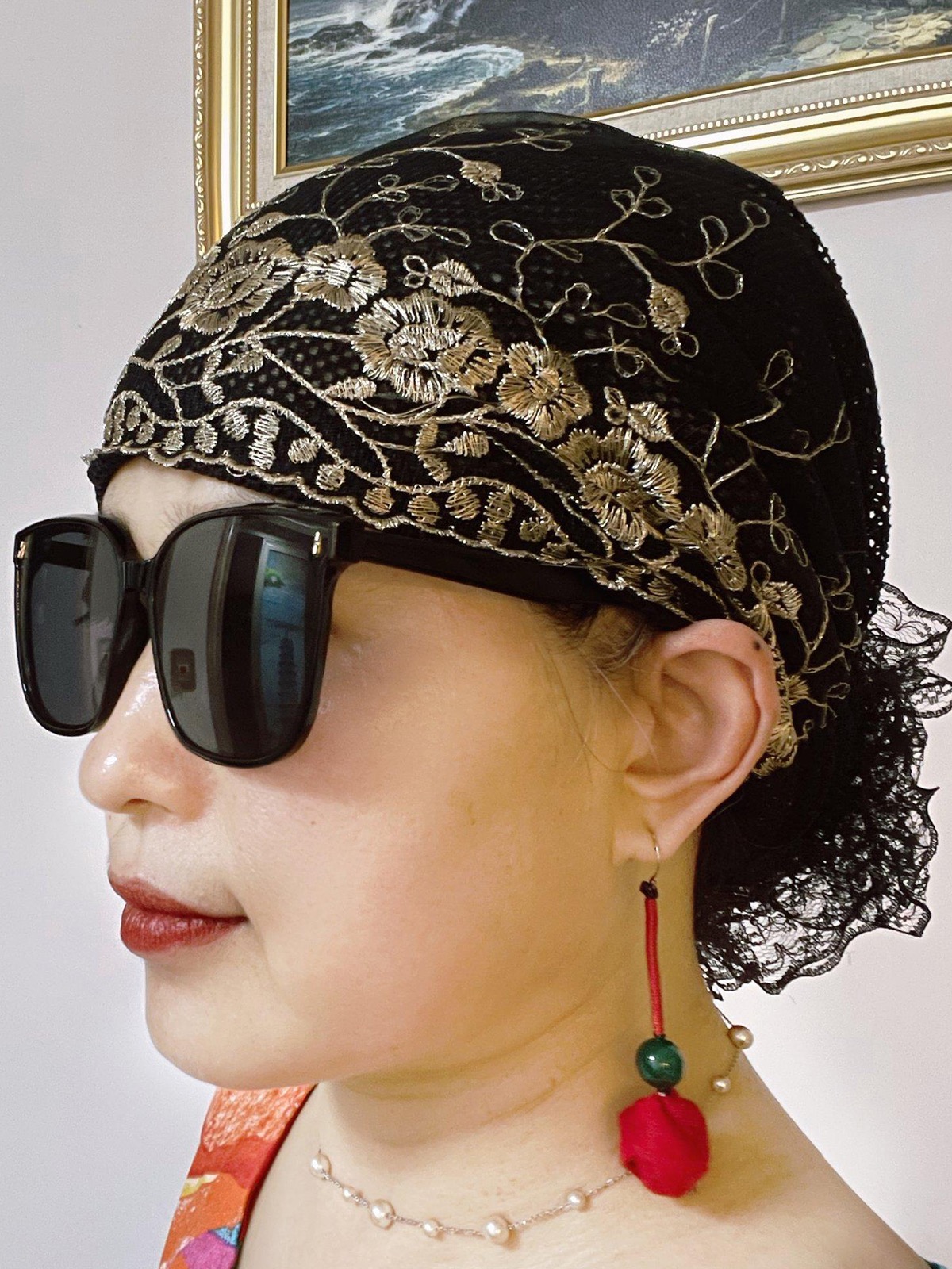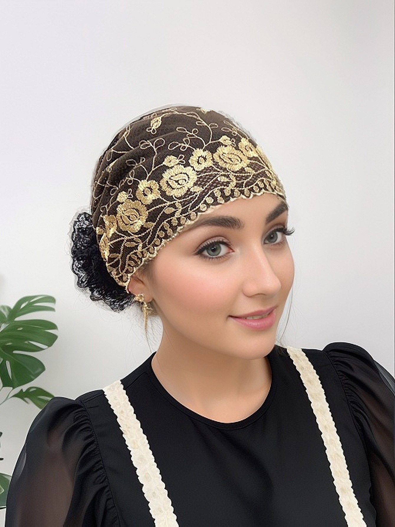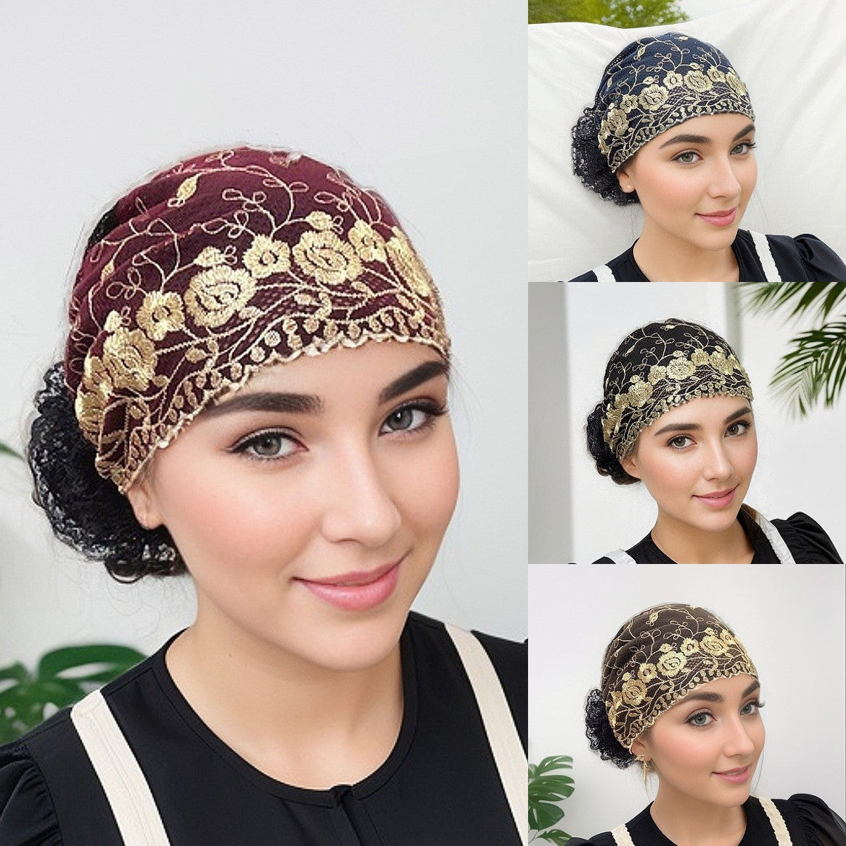 🧢2024 Esarfă de păr la modă și șapcă de păr cu broderie din plasă pentru a acoperi părul gri.