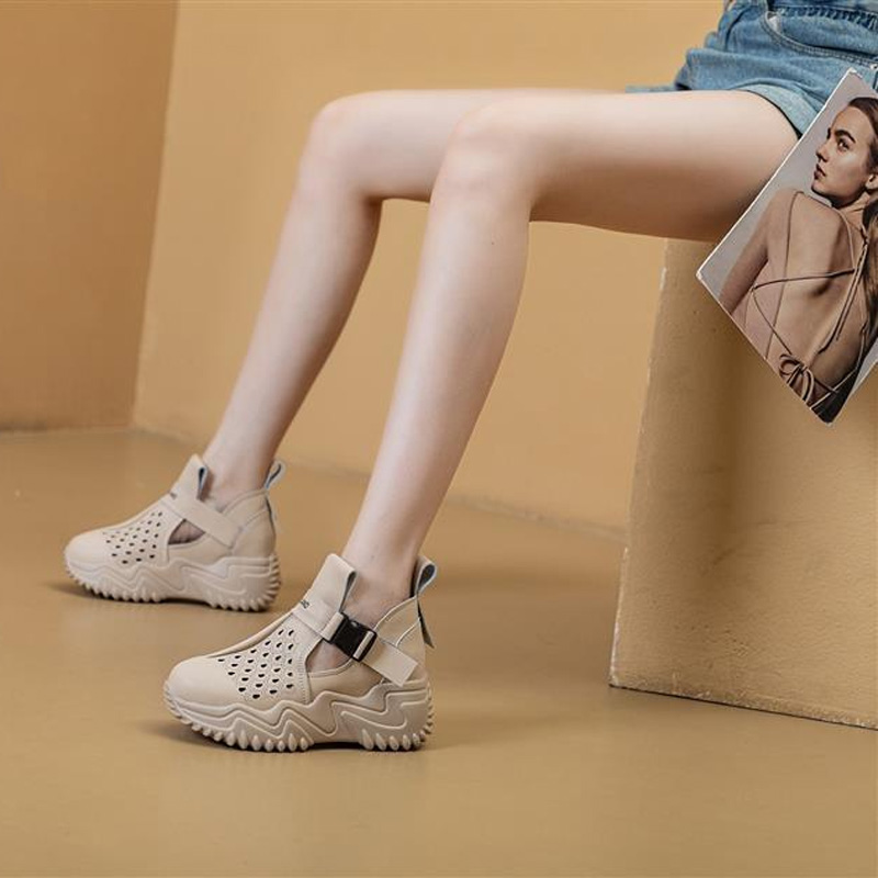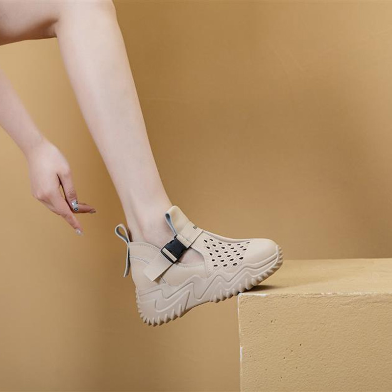 【35-40】2025 hollow sandals for women, casual and breathable, 100% genuine leather