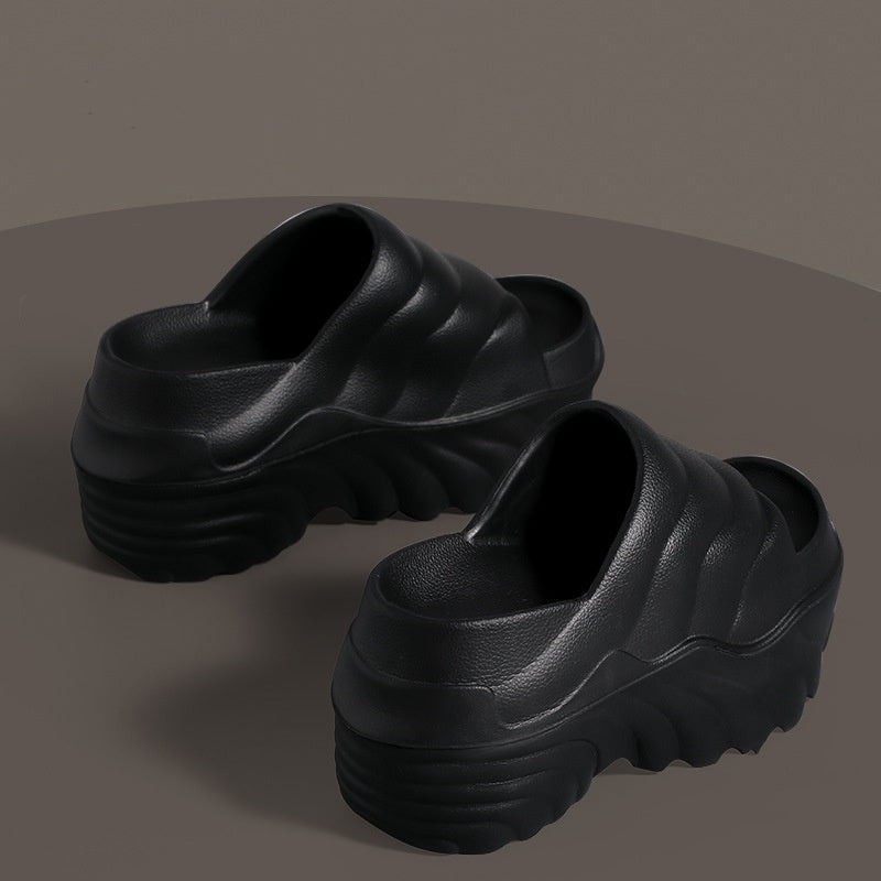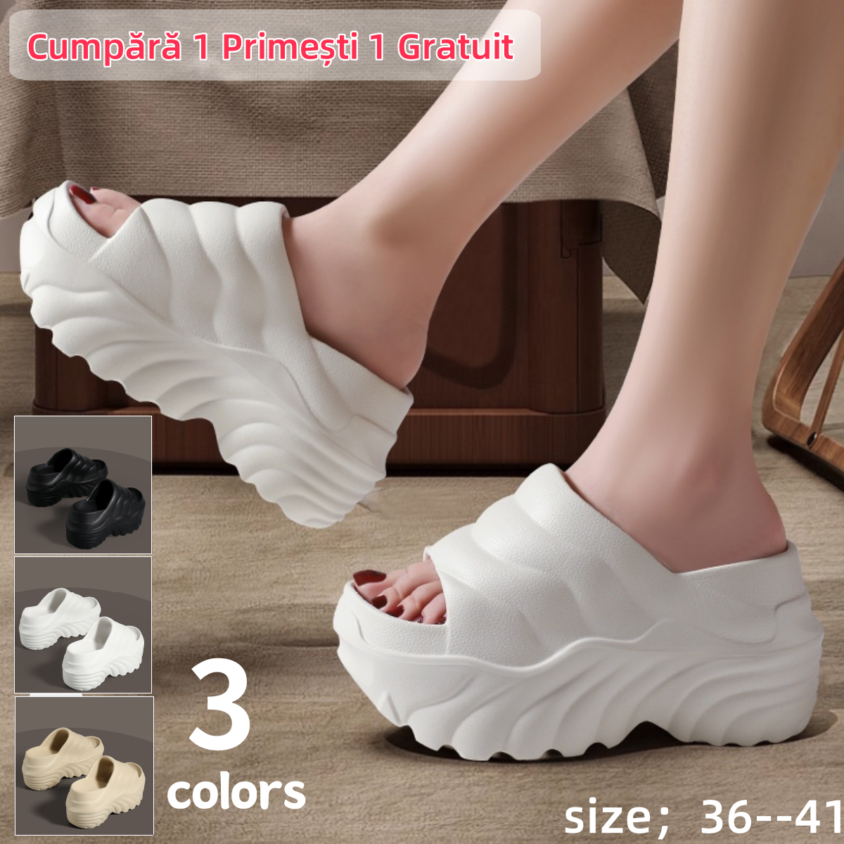 【36-41】2025 papuci noi de vară pentru femei, cu talpă groasă, cu tocuri cu pană, pentru purtarea exterioară, înălțirea și slăbirea pantofilor
