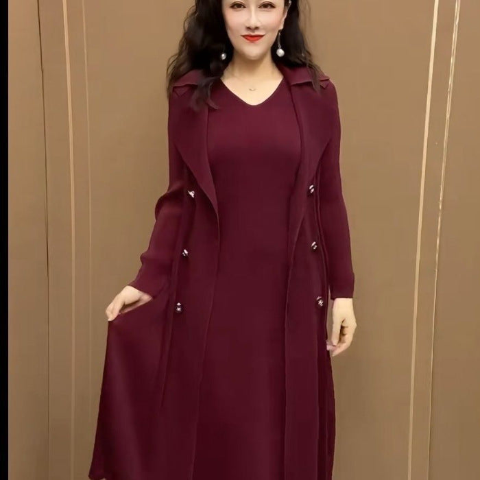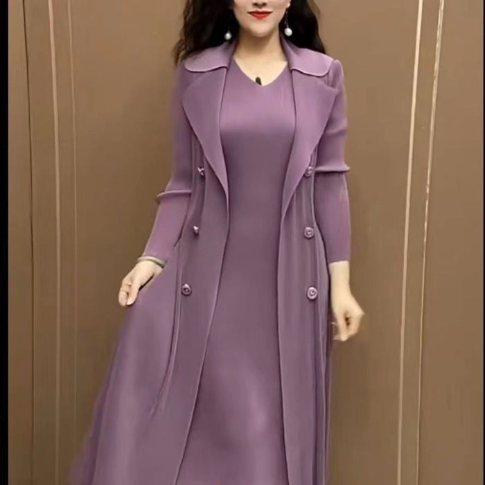 【M-4XL】Toamnă Nouă Elastic Fashion Fals Două Piese Windbreaker Rochie