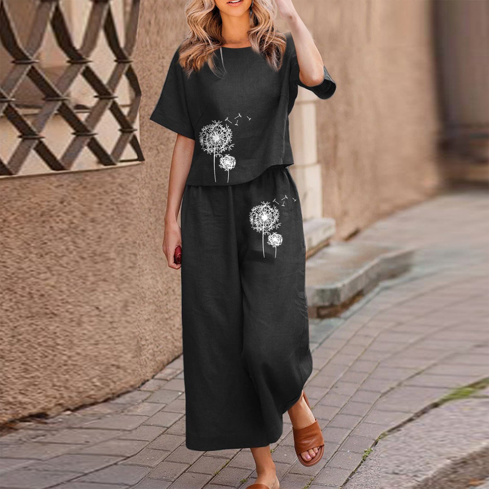 [Mâneci scurte + pantaloni] 2024 Moda Casual imprimate două piese Set