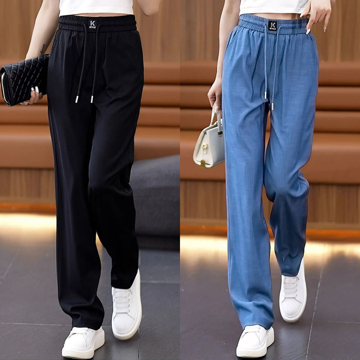 [Pachet de două]  ❤️【S-3XL】Blugi subțiri din mătase de gheață, cu picioare largi, cu talie înaltă