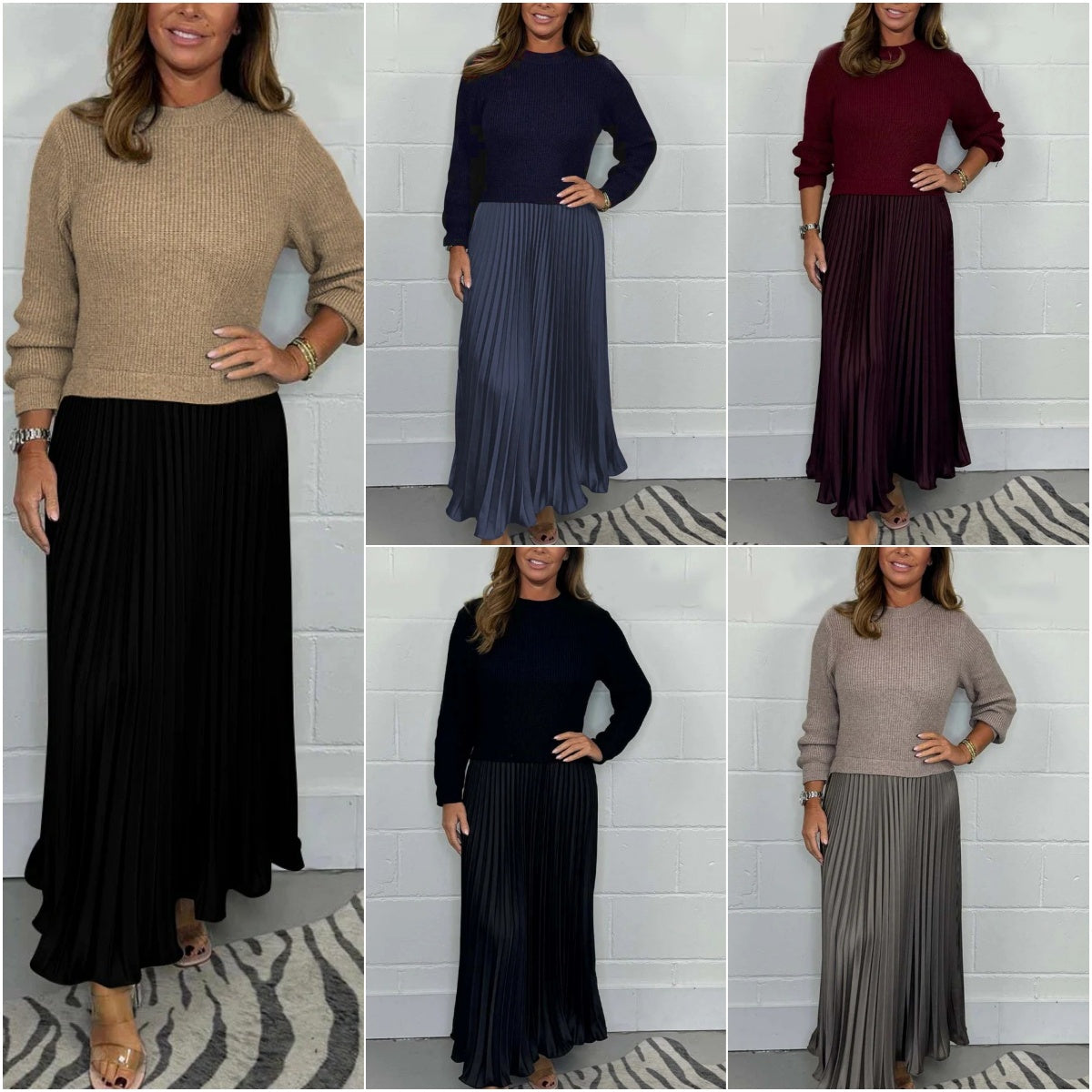 Rochie plisata la moda si eleganta cu decolteu rotund---3842236