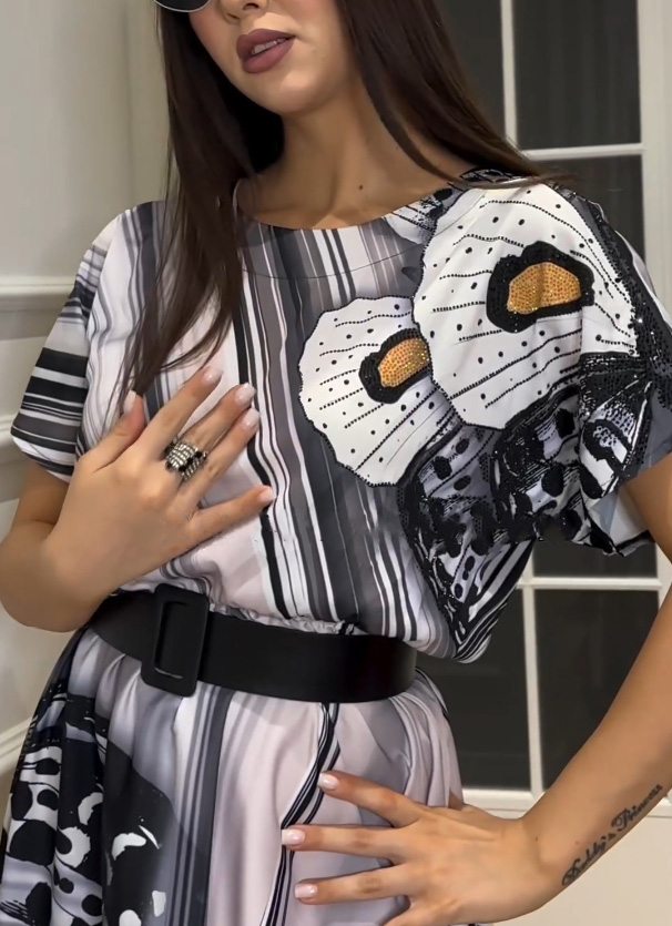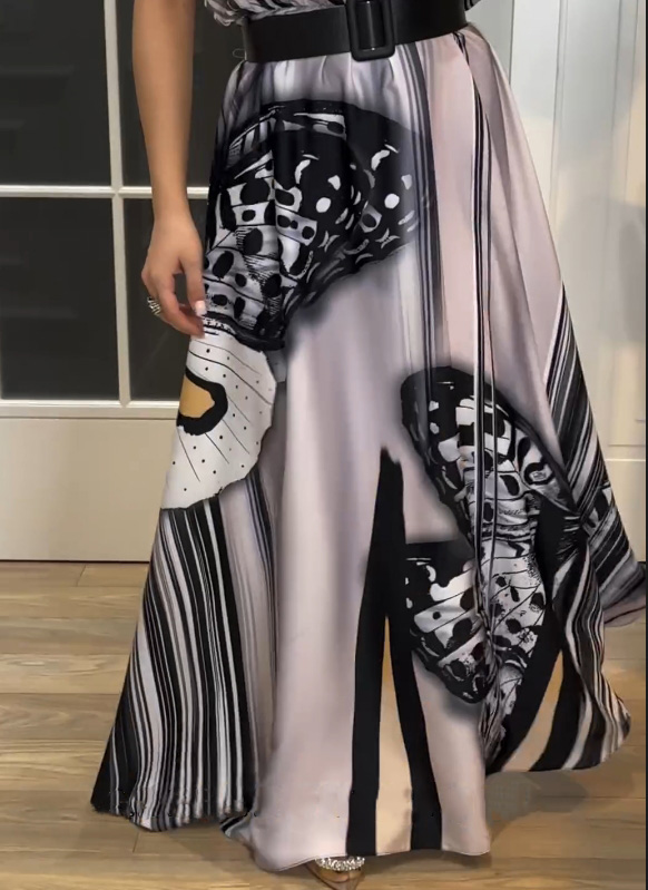 [S-5XL]Rochie cu imprimeu din satin de înaltă calitate