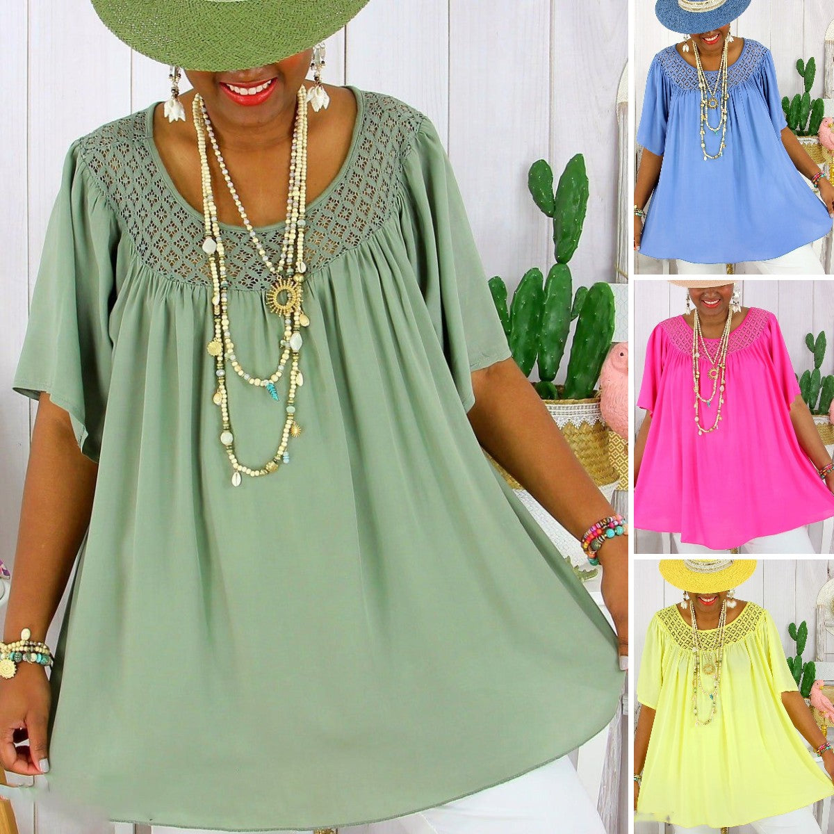 【XL-8XL】Imbracaminte pentru femei de vara noua de culoare uni din dantela larga plus marime